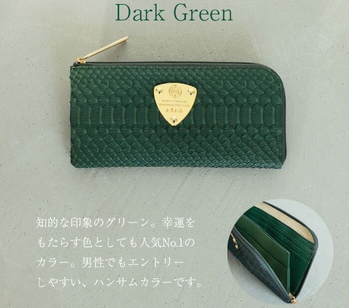 四緑木製のグリーン財布「ATAO limo ダイヤモンドパイソン」